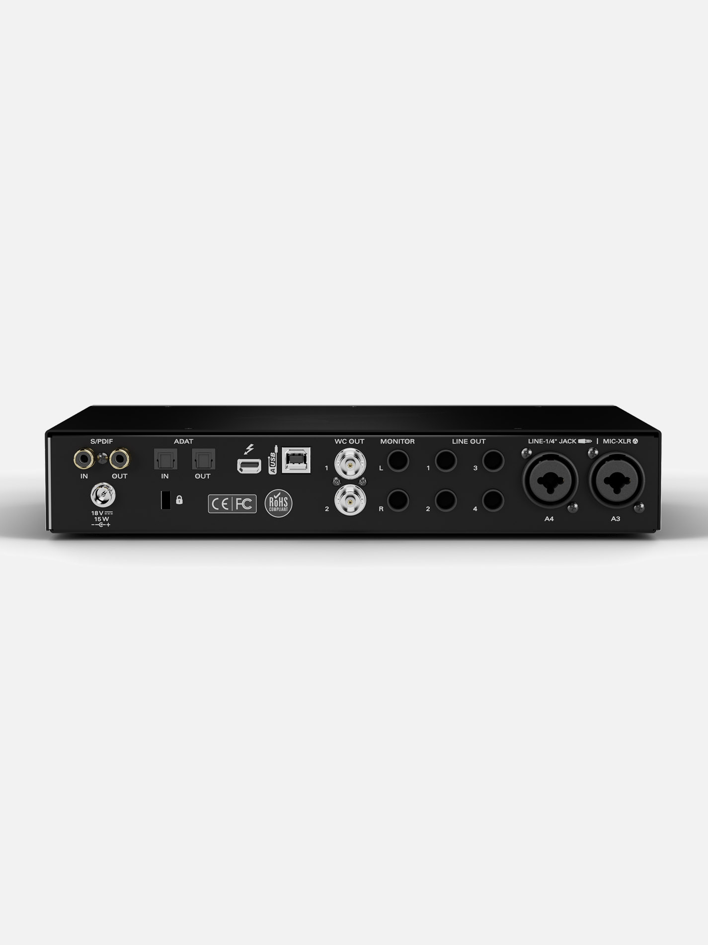 Grazie alla conversione AD/DA ad alta risoluzione con gamma dinamica fino a 121 dB e alla tecnologia di clock a 64 bit AFC™ (Acoustically Focused Clocking), l’Antelope Discrete 4 Synergy Core garantisce una scena sonora ampia, precisa e tridimensionale. La connettività completa include Thunderbolt, USB, uscite monitor dedicate, quattro uscite linea DC-coupled, porte ADAT e S/PDIF, ingressi microfonici combo XLR, due uscite word clock, quattro uscite cuffie indipendenti e ingressi phantom alimentabili.