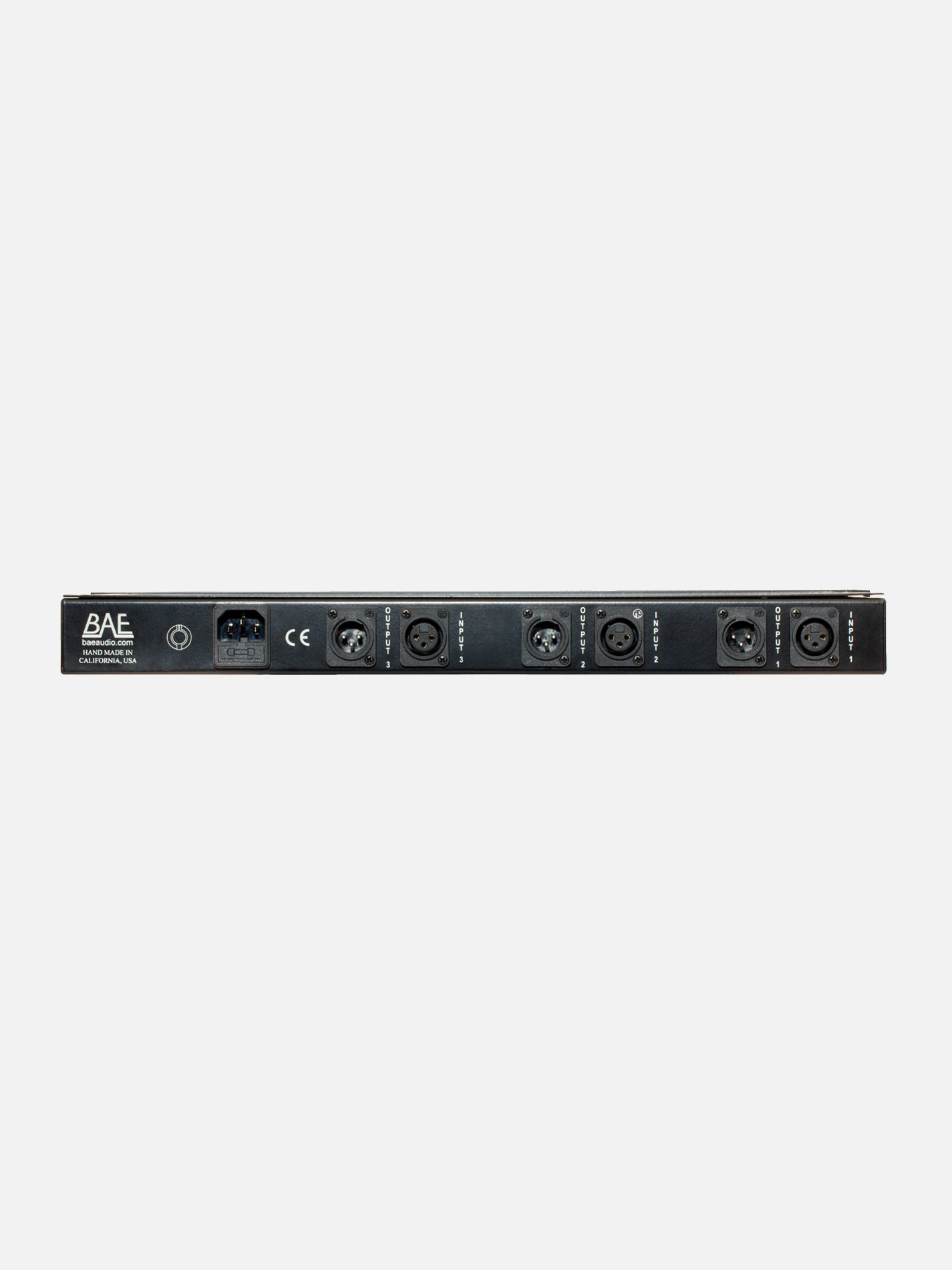 Il retro del Bae R53 include connettori XLR Neutrik per ingressi e uscite, sinonimo di qualità e connessione sicura. Inoltre, offre sia uscite dirette che la possibilità di collegamento (linking) tra i moduli, consentendo di creare facilmente una striscia di canali coerente e professionale.