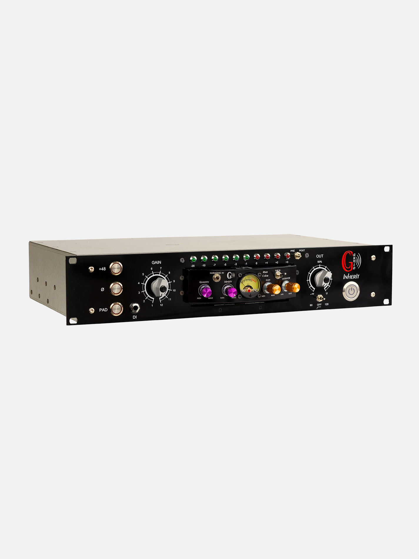 The Inherit System helps you keep your studio organized and clutter-free. With only one 2U rack, you can get many different preamps, compressors, equalizers, harmonic treatment, etc…