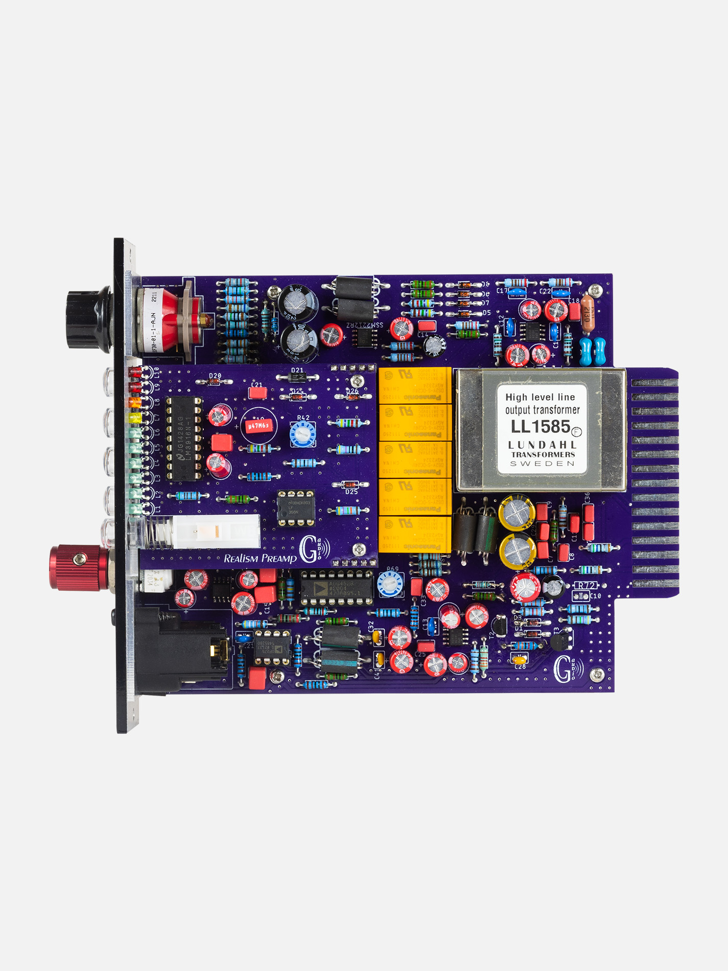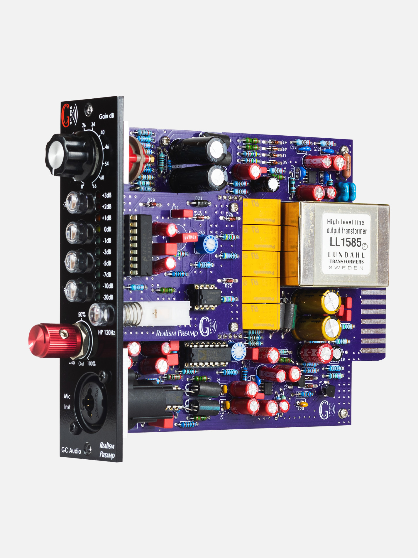 The GC Audio 500 Realism Preamp is designed for sound engineers seeking a very quiet preamplifier with great realism in the highs and flawless reproduction of the sharpest transients. With its class A differential preamp, high-quality capacitors, and Lundahl output transformer, it delivers pristine audio quality with minimal distortion. Whether you’re working on vocals, instruments, or any other audio source, this preamp will bring a clear, realistic, and powerful sound to your recordings.