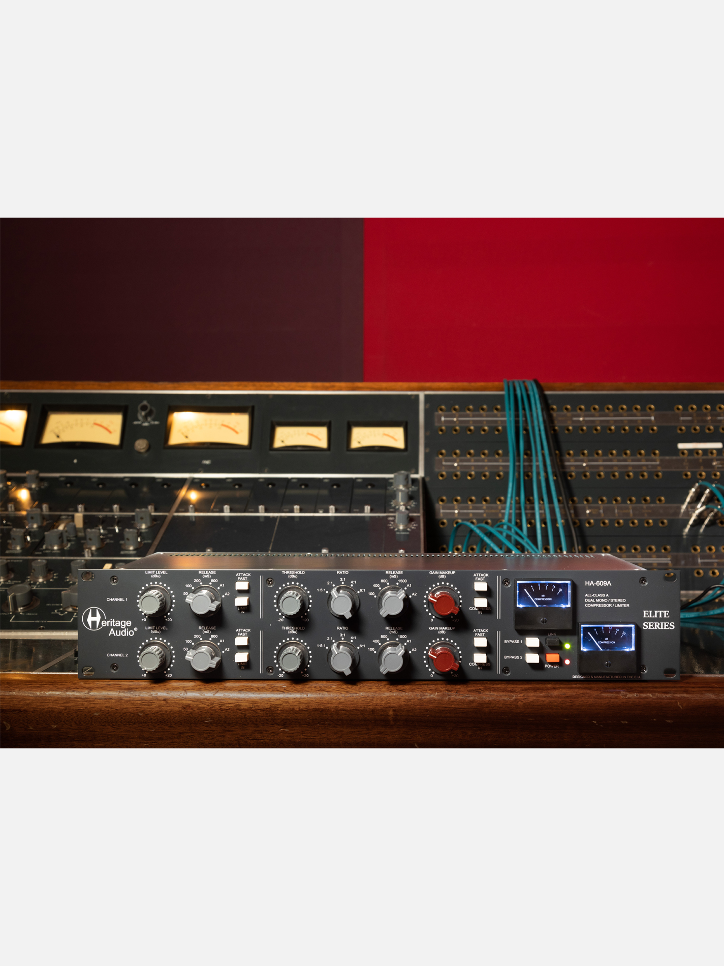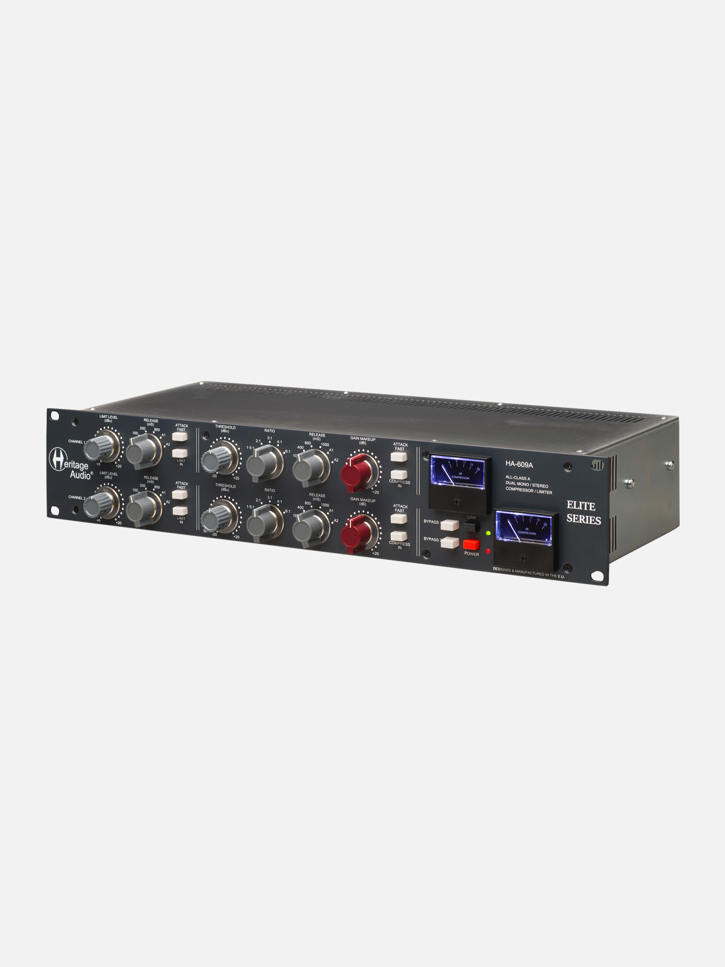 L’HA-609A di Heritage Audio è una reinterpretazione moderna e migliorata del classico compressore/limitatore a ponte di diodi con trasformatore, progettata per adattarsi perfettamente ai flussi di lavoro attuali in studio, senza rinunciare al carattere sonoro vintage.