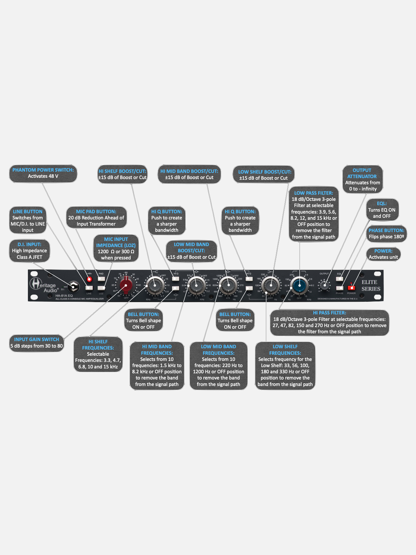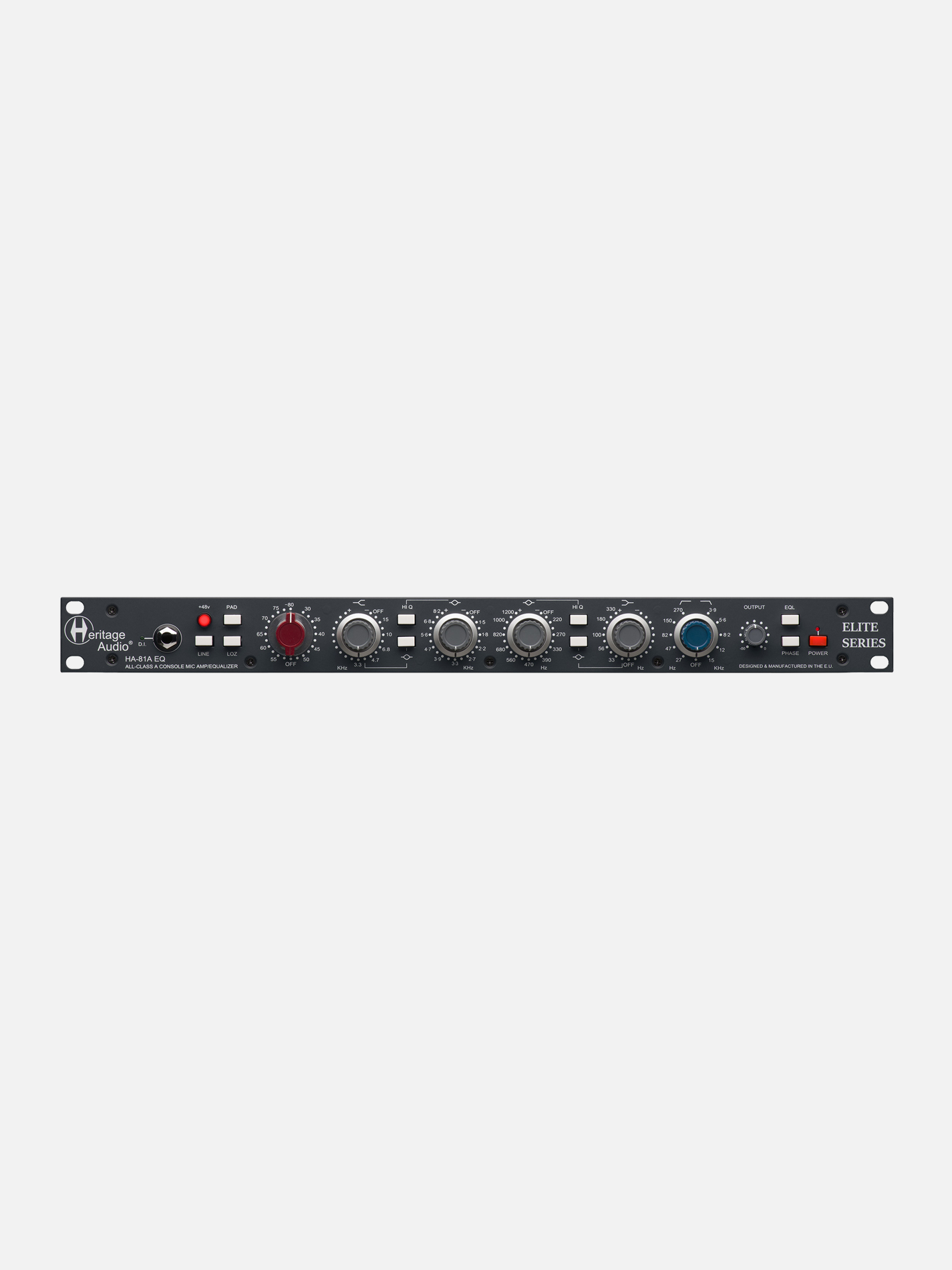 HERITAGE AUDIO HA81A ELITE è costruito con gli stessi standard elevati di tutta la serie Elite: tecniche di produzione moderne, assemblaggio meticoloso presso la sede Heritage Audio in Spagna e nessun compromesso sulla qualità audio. L’approccio ibrido consente di ottenere la musicalità di un’equalizzazione vintage con la precisione e l’affidabilità richieste negli studi professionali contemporanei.