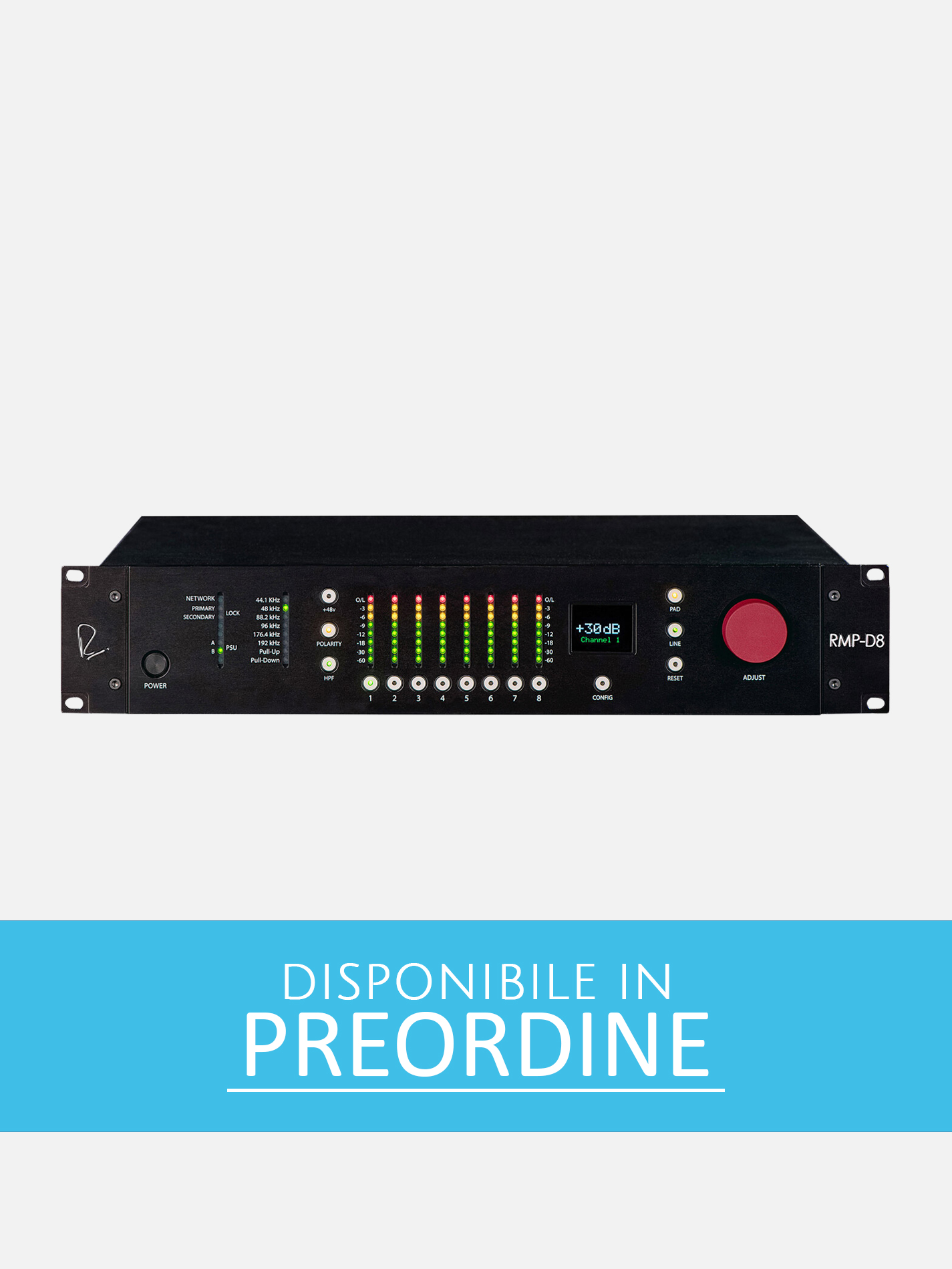 – Gain: Unità fino a +66 dB in passi di 6 dB. Trim regolabile in continuo da -6 dB a +6 dB